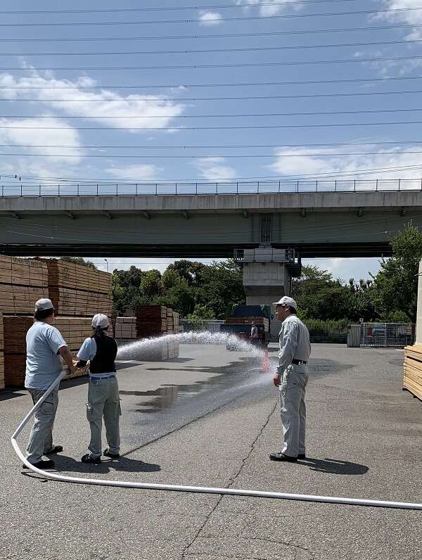 8月の暑い日、飛島工場の消火訓練が行われました。